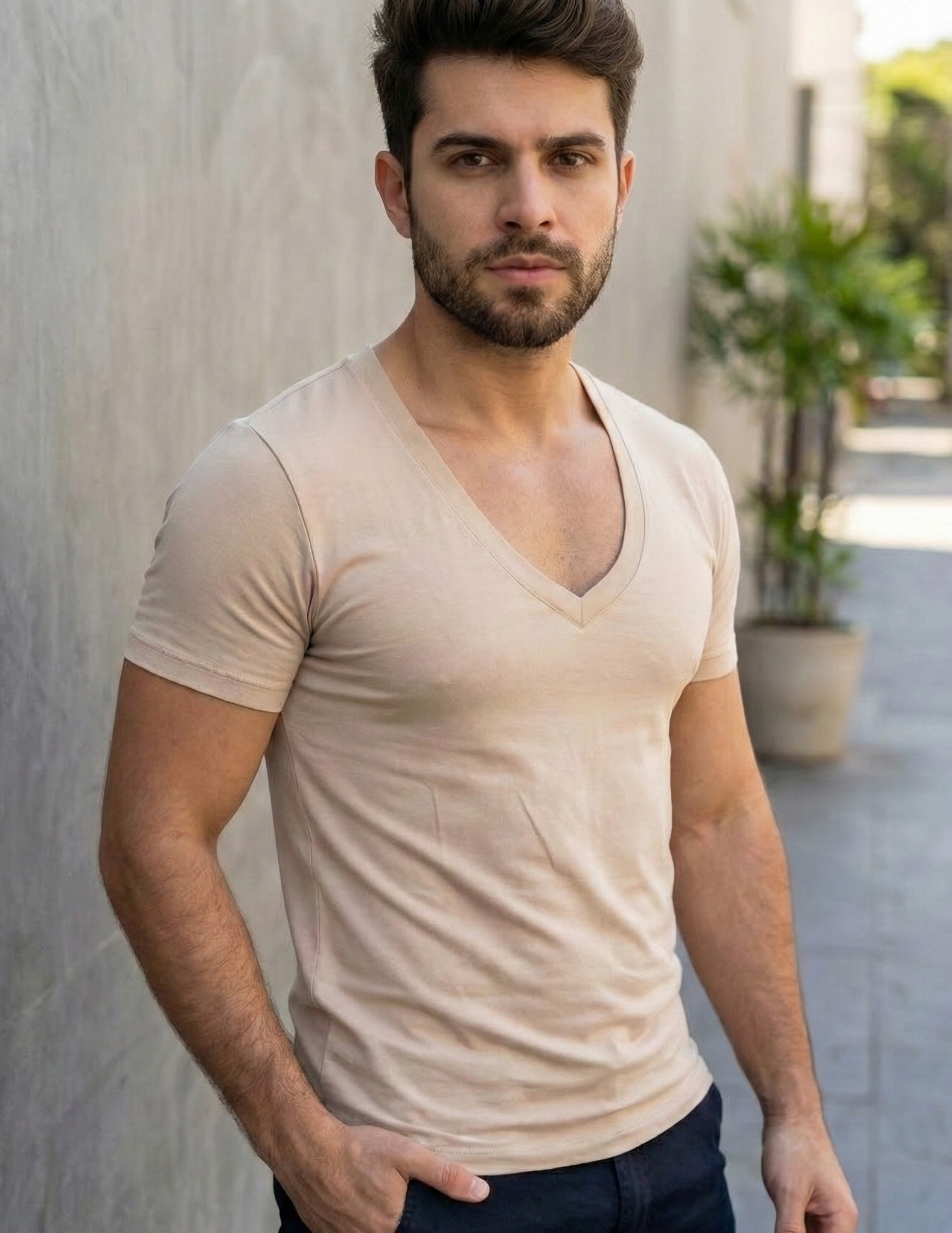 A Camiseta Masculina Gola V Cavada é a escolha perfeita para o homem moderno que busca conforto e estilo.